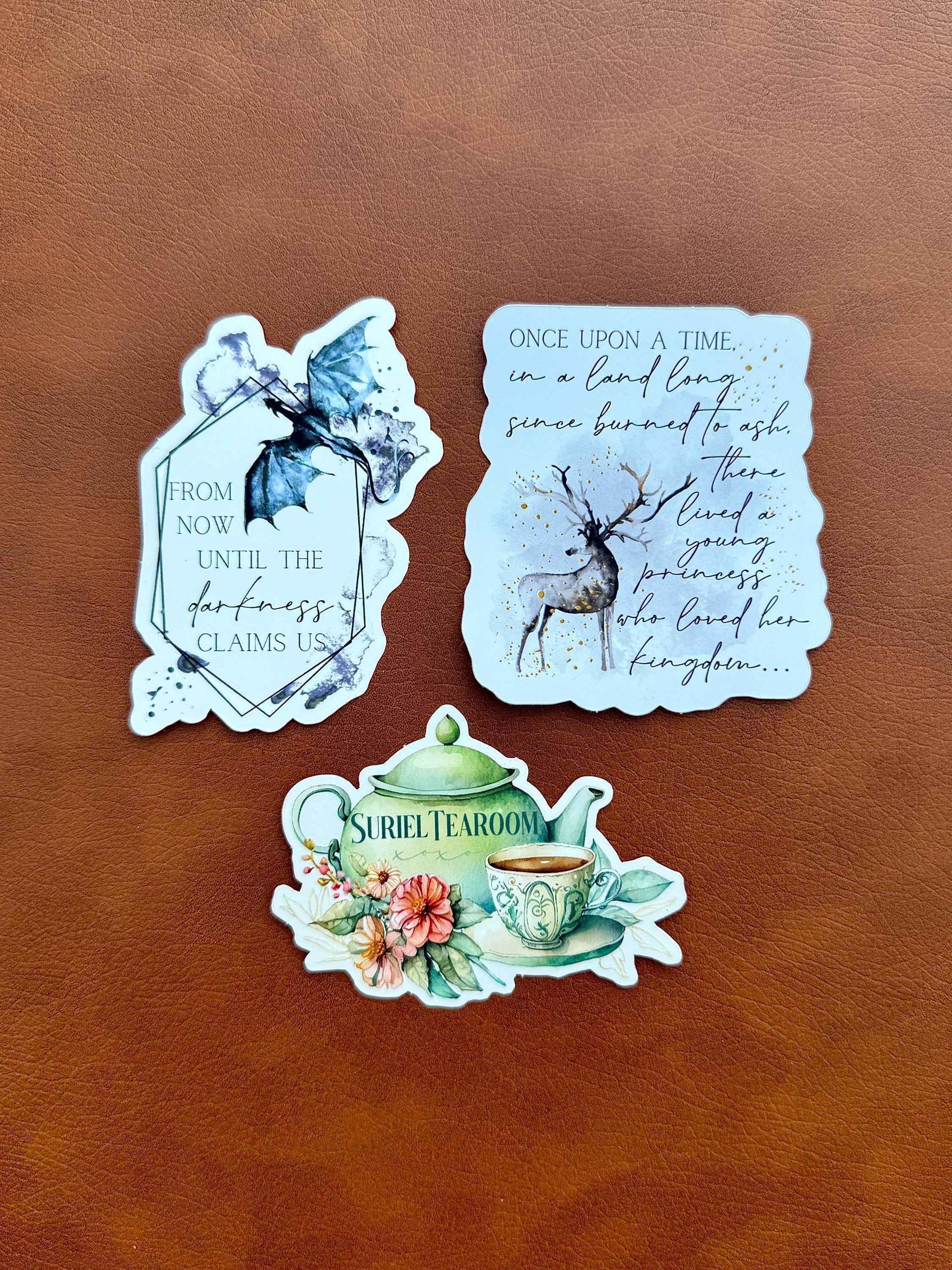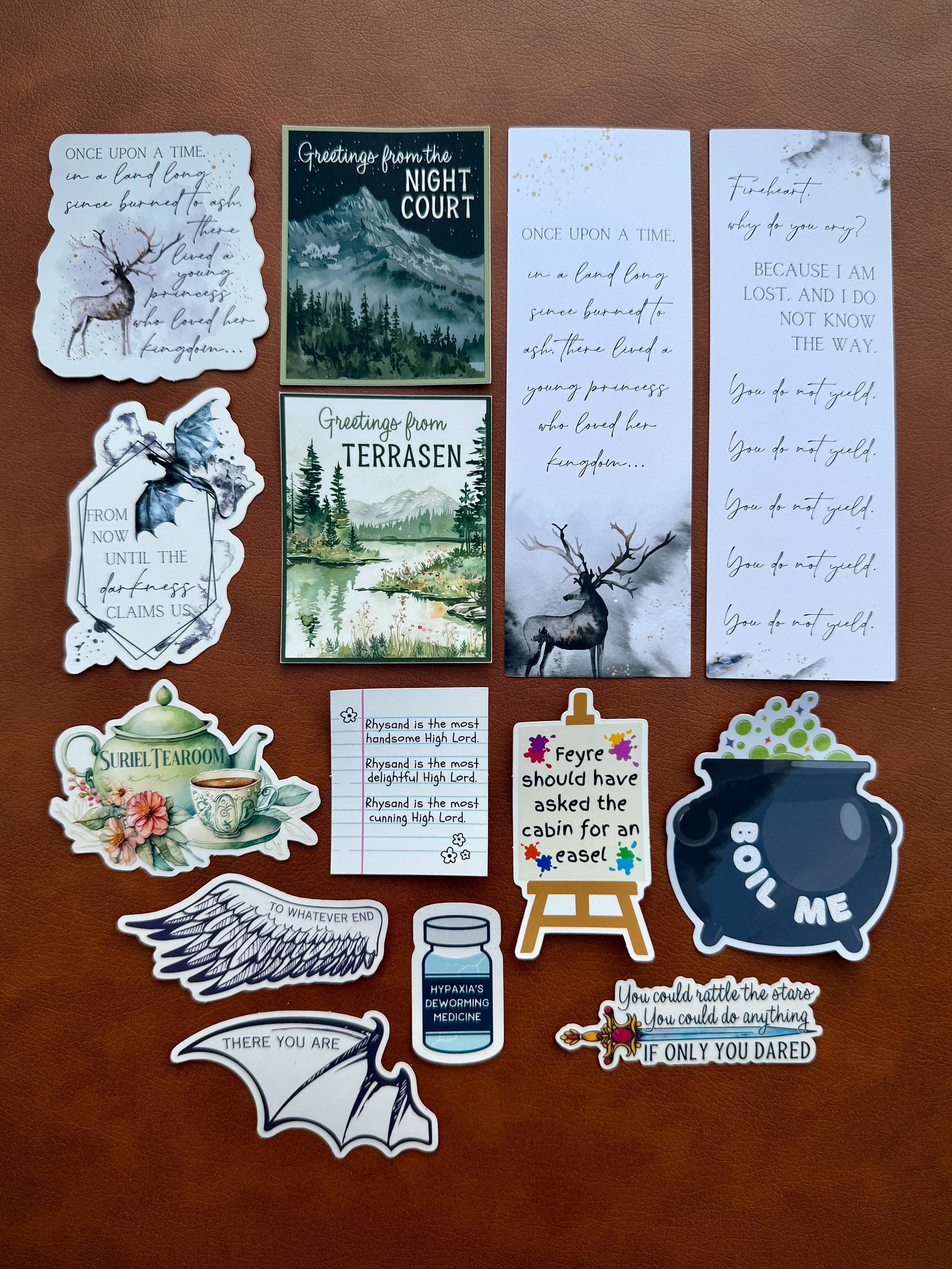 Bundle includes stickers from A Court of Thorns and Roses (ACOTAR), Crescent City, and Throne of Glass.