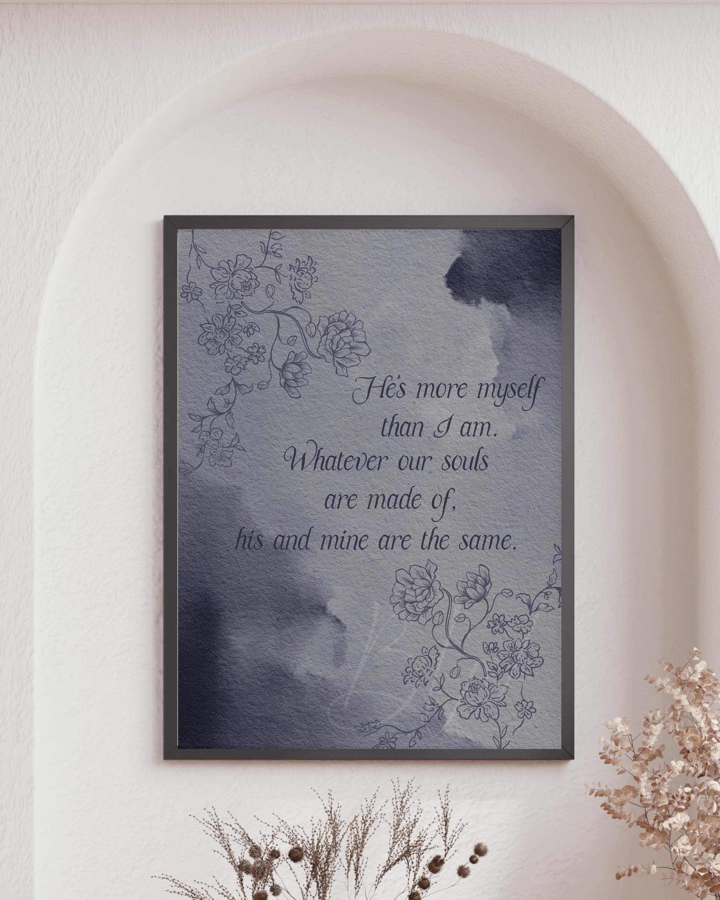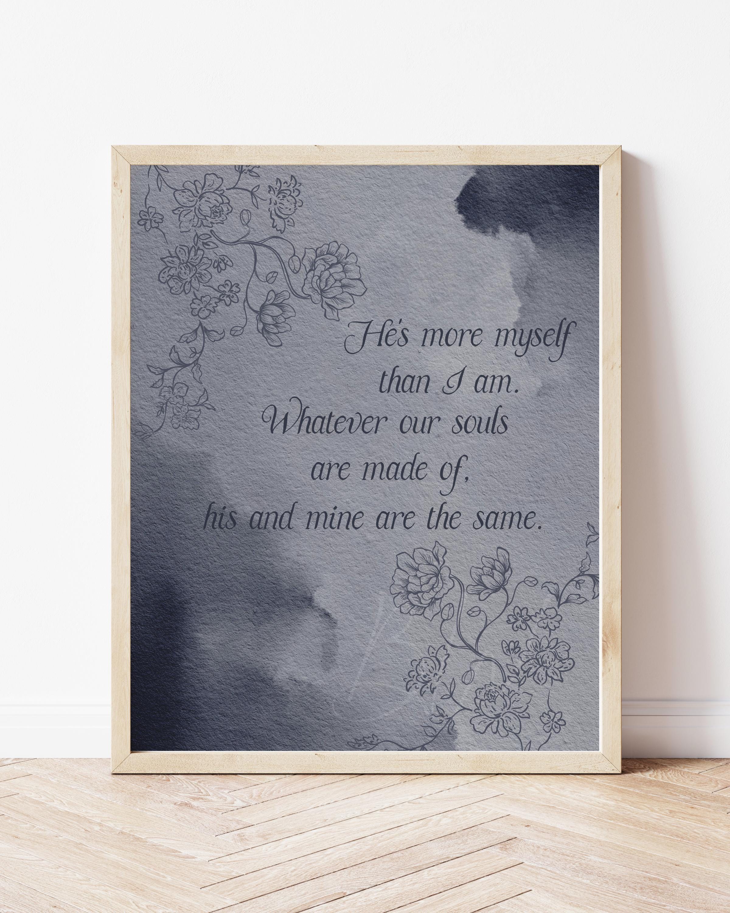 Bring timeless romance to your space with digital print featuring the beloved quote from Wuthering Heights, "He's more myself than I am. Whatever our souls are made of, his and mine are the same."