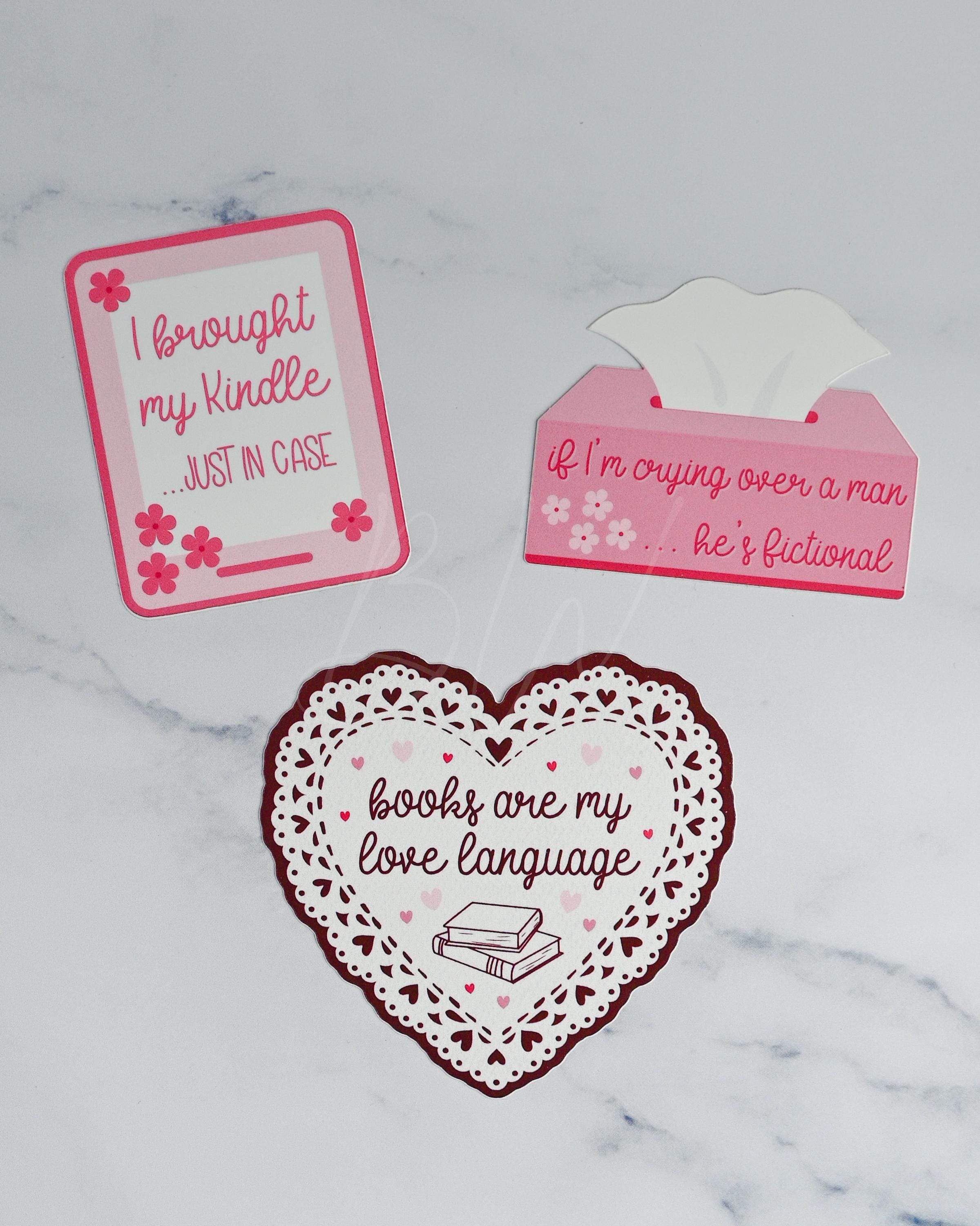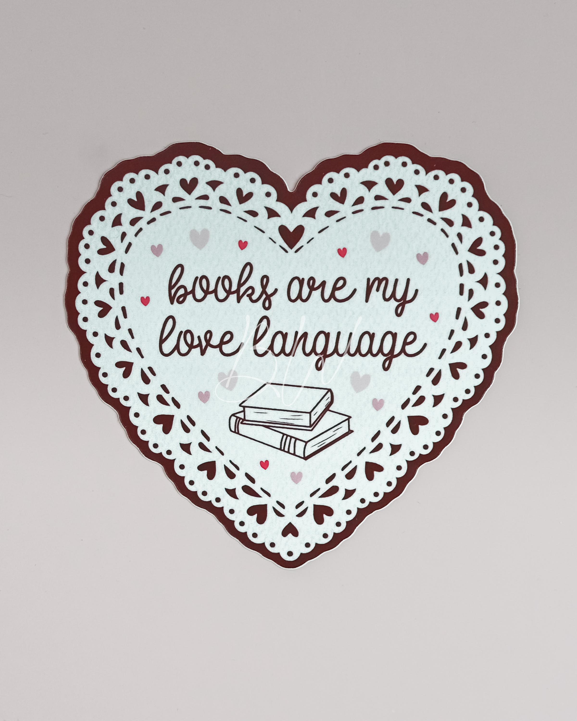 This listing is for the “Books Are My Love Language” sticker only — the others pictured are available in my shop.