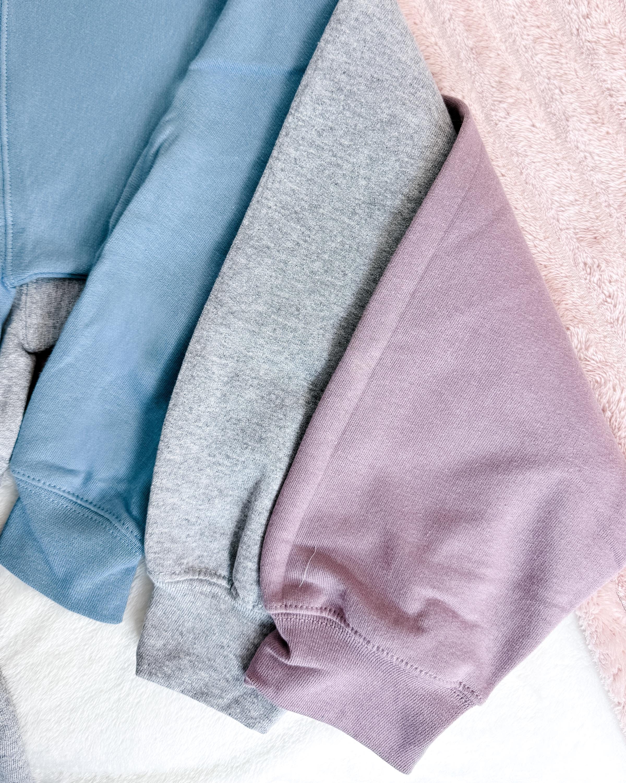 • Style: Unisex crewneck sweatshirt - Paragon (mauve/purple) and Stone Blue are in the Soft Style Midweight Gildan variety and the gray is in Heavy Blend style