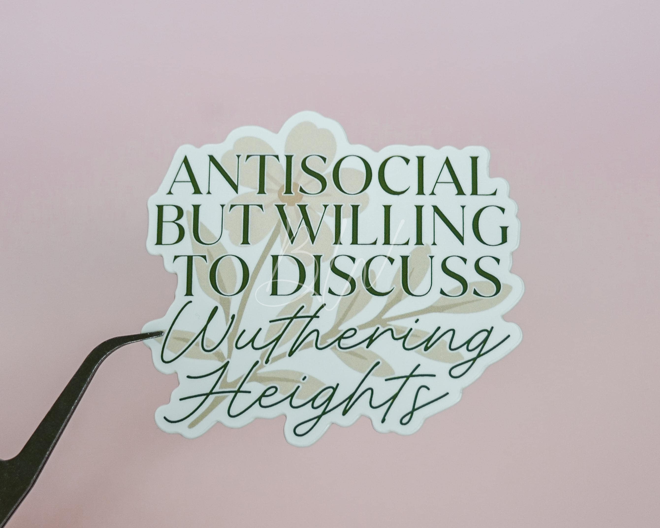 *This listing is for the ‘Antisocial but willing to discuss Wuthering Heights sticker ONLY*
